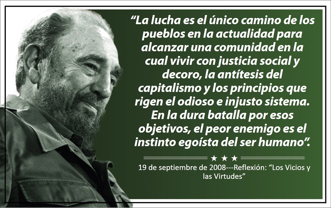 Liebe Compañeros, seit dem Jahr 2006 bin ich aus Gesundheitsgründen, die unvereinbar mit der Zeit und Mühe waren, die aufgebracht werden müssen, um eine Pflicht zu erfüllen, die ich mir vor 70 Jahren auferlegte, als ich am 4. September 1945 in die Universität eintrat, von meinen Ämtern zurückgetreten.