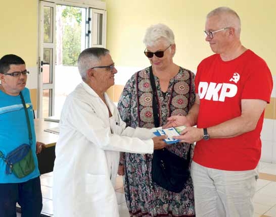 Peter Weyland: Wir hatten Hygieneartikel dabei – Duschgel, Seifen, Tampons, Kondome … Die haben wir teilweise bei einem Kulturprojekt für Jugendliche und teilweise in einer Schule abgegeben. Dann hatten wir für Schulen und für die Kinder und Jugendlichen in Cárdenas Malzeug, Schulhefte, Stifte et cetera. Zudem haben wir Medikamente mitgenommen – die haben wir in Cárdenas und in einer Familienarztpraxis gelassen. Und es gab eine Lieferung von gebrauchten Brillen. Die ist an das ICAP gegangen, das Kubanische Institut für Völkerfreundschaft. Darüber hinaus hatten wir Bettlaken für die Klinik „Rosa Luxemburgo“ in Cárdenas dabei, also die Kinderklinik, die mit Hilfe eines Solidaritätsprojektes der DKP entstanden ist.