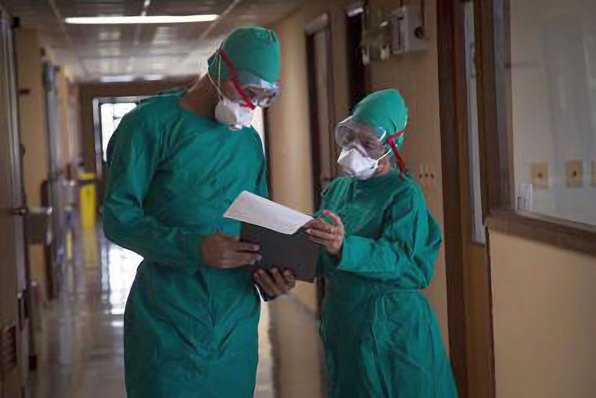 Pflegepersonal im IPK in Havanna, Kuba: Für die Behandlung von Patienten mit einer Infektionskrankheit angemessen geschützt