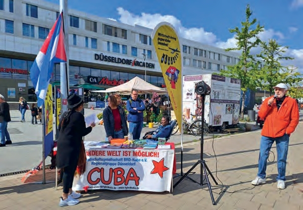 Kundgebung „Unblock Cuba“ am Samstag, den 14.9.24 vor den Bilker Arkaden Beginn der neuen „#Unblock Cuba“–Kampagne. Leider war das Wetter nicht so schön wie bei den früheren Kundgebungen zuvor, dennoch gab es eine gute Resonanz. |