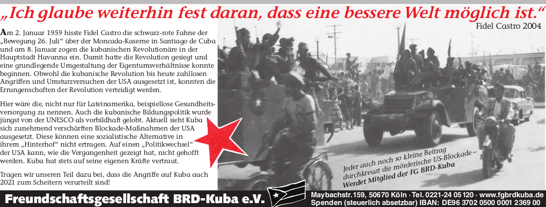 Presse-Erklärung der FG BRD-Kuba e.V., Regionalgruppe Essen