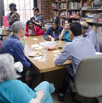 Unter Freunden: Angeregte Debatte mit Jorgito im Brooklyn Commons, dem Sitz des Women’s Press Collective (New York, 23.04.2016) |