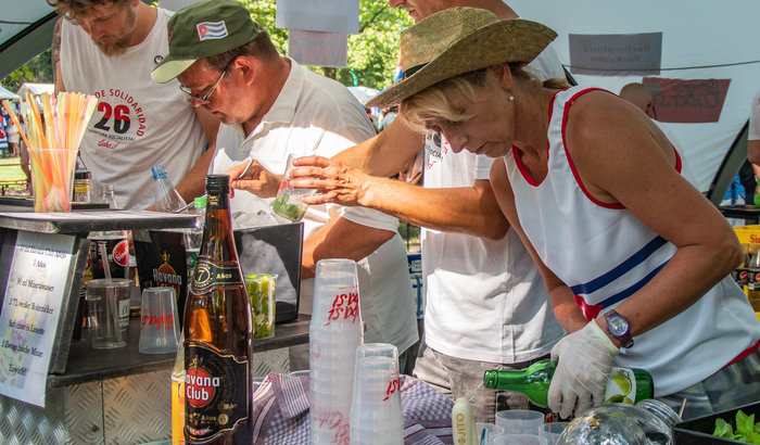 Karibisches Flair und heiße Rhythmen bei tropischen Temperaturen im Berliner Stadtpark: Groß und klein zog es am vergangenen Samstag in die als Parkaue bekannte Grünanlage, die wie eine Insel östlich der Ringbahn im Häusermeer des alten Stadtkerns von Lichtenberg liegt. Wie jedes Jahr hatte Cuba Sí, Arbeitsgemeinschaft der Partei Die Linke, dorthin eingeladen, um mit Freunden und Besuchern ihre »Fiesta de Solidaridad« zu feiern. Die findet stets rund um das Jubiläum des 1953 in Santiago de Cuba unter Führung Fidel Castros versuchten Sturms auf die Moncada-Kaserne statt, welche zur Initialzündung für die »Bewegung des 26. Juli« wurde. Die Revolution konnte losgehen.
